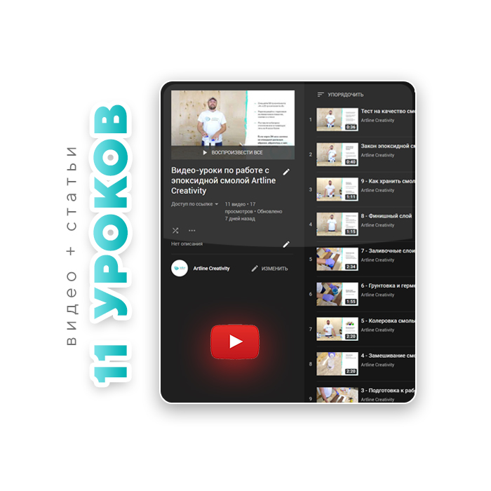 Видео-курс из 11 уроков (видео + статьи) и лайфхаков, который поможет избежать большинства распространенных ошибок в создании заливок из эпоксидной смолы.